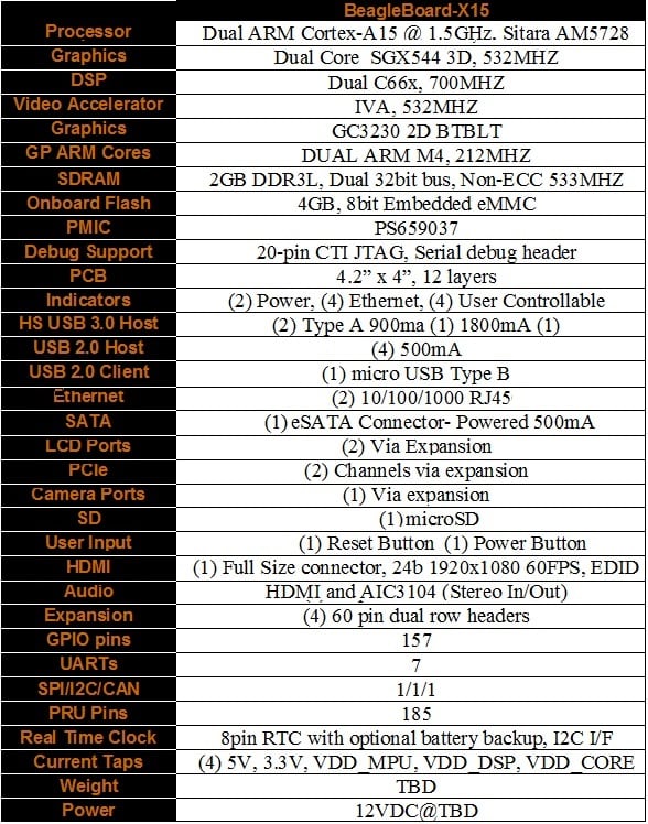 Chart - BeagleBoard X15 Single Board Computer
